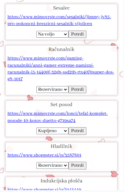 Opis željenega darila/variante/barve
